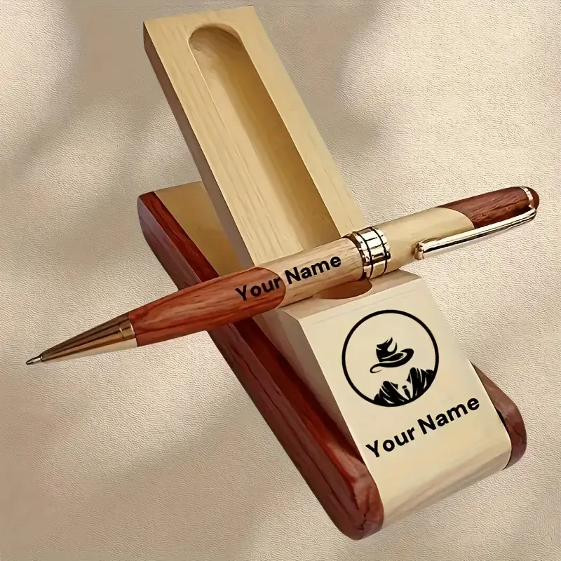 Personalized Luxury Wooden Ballpoint Pen Gift Box, High-End Unisex Designer Wood
