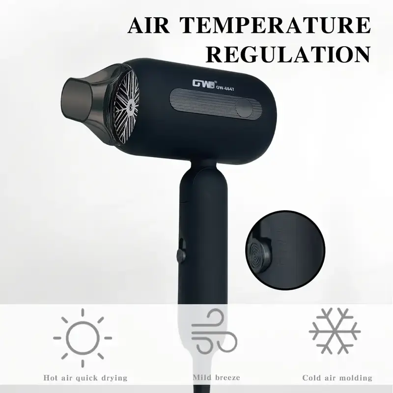 GW 1300W Foldable Travel Hair Dryer with Concentrator, 3 Speed Settings, Cold &