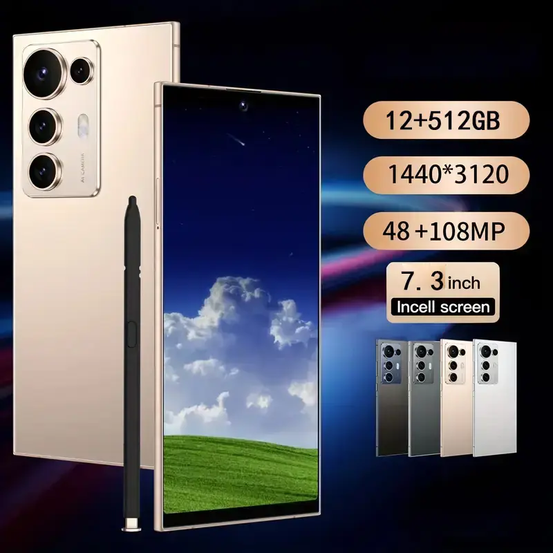 12+512GB Unlock Smartphone- Dual SIM Cell Phone with Stylus, 7500mAh Battery, 48
